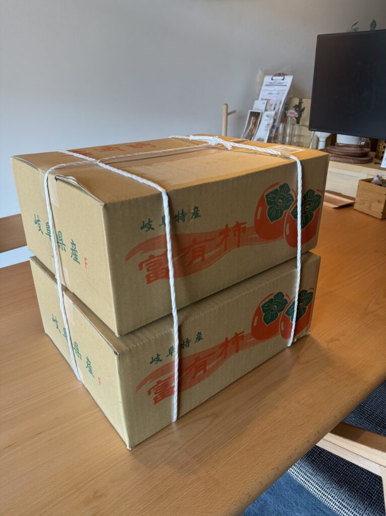 こんにちは。建築屋kateiの朝倉です。会社の事務所にこんなものが届きました。 岐阜県名産の「富有柿」です。とってもおいしい柿です。 送り主は、私が社会人になりたての修行時代、岐阜県のとある工務店に勤めていた際、現場監督