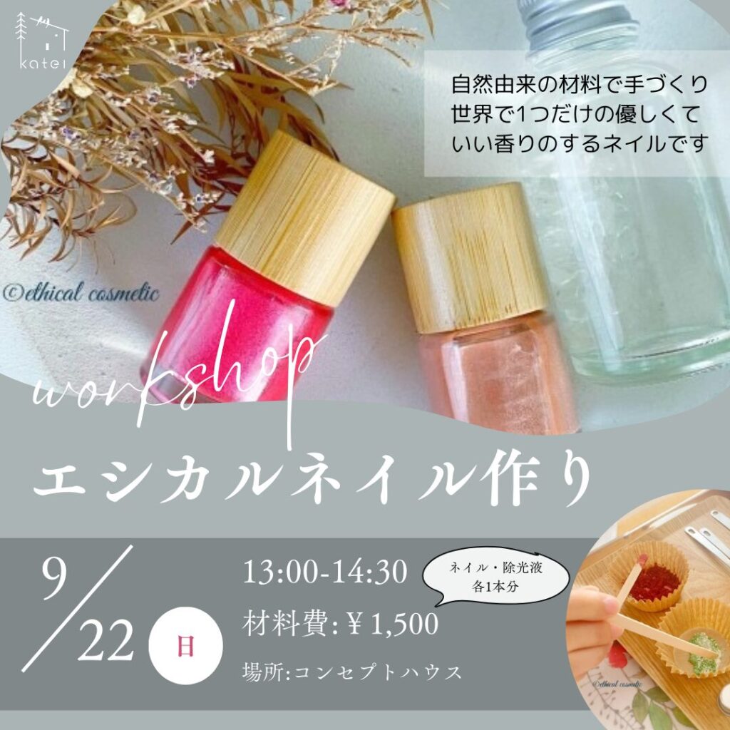 ※こちらのイベントは終了しました。 今回は天然素材100%の手づくりネイルのワーショップのお知らせです。 【日時】2024年9月22日(日)13:00~14:30頃 【場所】建築屋kateiコンセプトハウス(豊橋市細谷町 […]