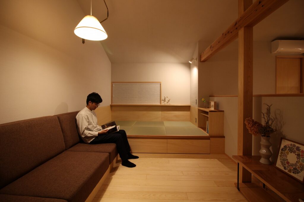 こんにちは。建築屋kateiの朝倉です。現在工事中の現場にて、お客様と造作ソファの打合せ。 クッションのサンプルを利用して、硬さなどを確認。今回は、座面が1100mmと幅が広く少し特殊なタイプ。ほぼシングルベッドのサイズ