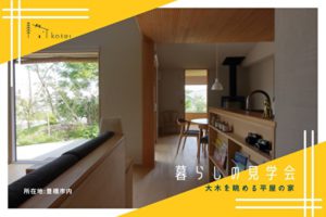 豊橋市で実際に住んでいるお家を体験できる「暮らしの見学会」を開催します。新築完成見学会では味わえない、約3年住んでみた暮らしの様子をご覧になれます。 見どころ ・キャンプ好きな家主の工夫が満載・素材を大切にした大工造作家