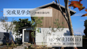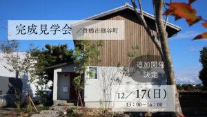 12月9日・10日、豊橋市で「新築完成見学会」を開催させていただきました。大変ご好評いただき、ご希望の日にご案内できない方もいらっしゃったため、12月17日(日)に追加開催が決定しました。家主様のご厚意に感謝いたします。
