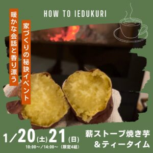 ※こちらのイベントは終了いたしました。ありがとうございました。 あたたかい家の中で熱々の焼き芋はいかがですか?昨年ご好評いただきました「焼き芋&ティータイム」。今年は2週連続で2日間、開催いたします。 ・薪ストーブで作る