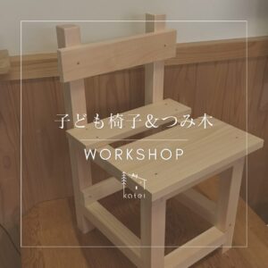 ※こちらのイベントは終了いたしました 今回は、子ども椅子とつみ木のワークショップのお知らせです。 ひのき、チーク、オークなどを含んだ建築端材を使って子ども用の椅子をつくっていただけます。道具は準備してありますので、手ぶら