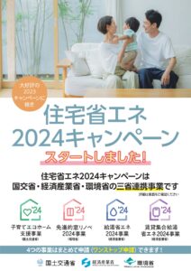 こんにちは。建築屋kateiの朝倉です。 今年度も昨年度に引き続き、国の補助金事業「住宅省エネ2024キャンペーン」が始まりました!こちらは、国土交通省、経済産業省、環境省の三省連携事業で、高い省エネ性能を有する新築住宅