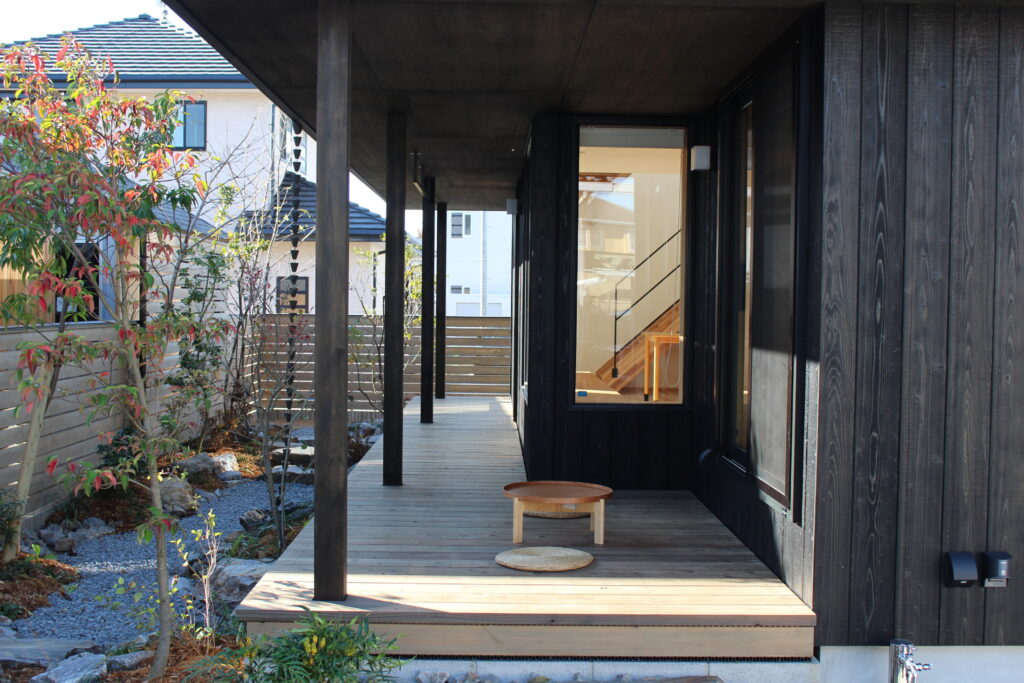 庇や軒下、ピロティのような半屋外空間を、私たちは“暮らしを豊かにする場所”と考えています。光や風、季節の移ろいを感じるこの中間領域には、安らぎや癒しの時間が生まれます。日射を遮り、心地よい影をつくり出す庇の下で過ごす時間。そこでは家族の会話が生まれ、子どもたちの笑い声が響き、日常がより豊かになります。屋内外を緩やかにつなぐことで、家全体が呼吸するような設計を心がけています。