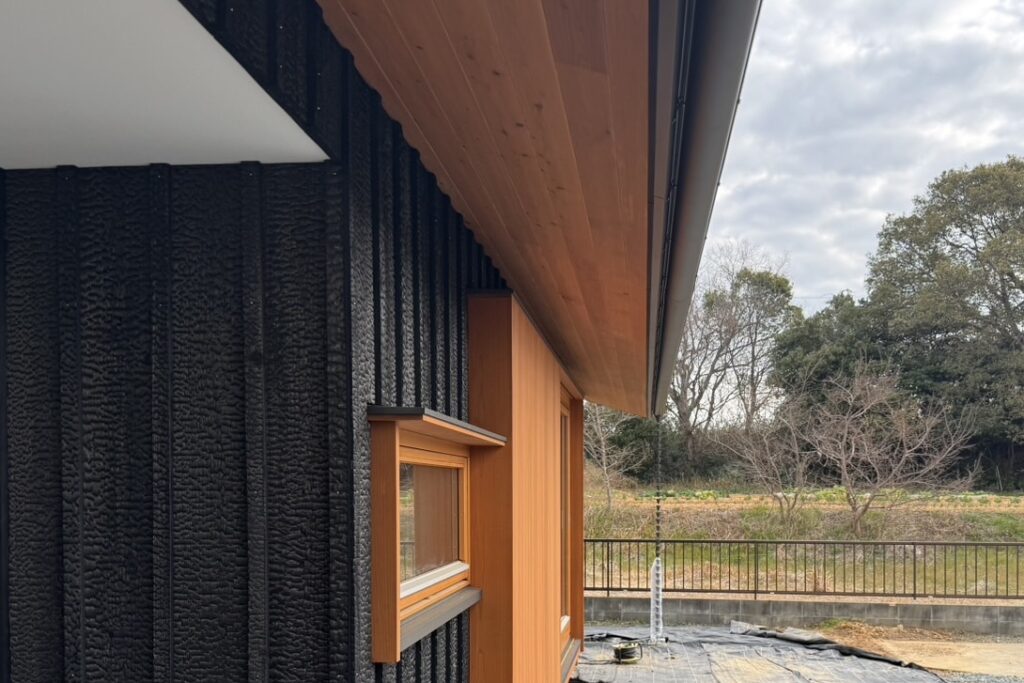 ・天龍杉を三角焼きで仕上げた焼杉外壁