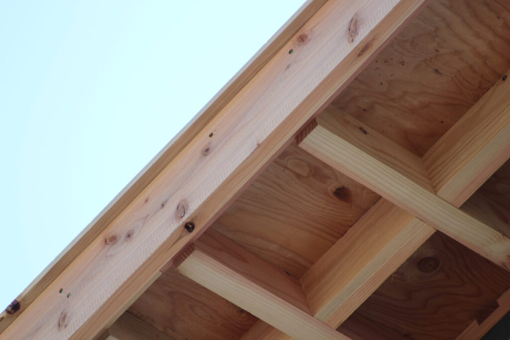 上棟から約3ヶ月で大工工事が完了。仕上げに向けて下地の確認をします。