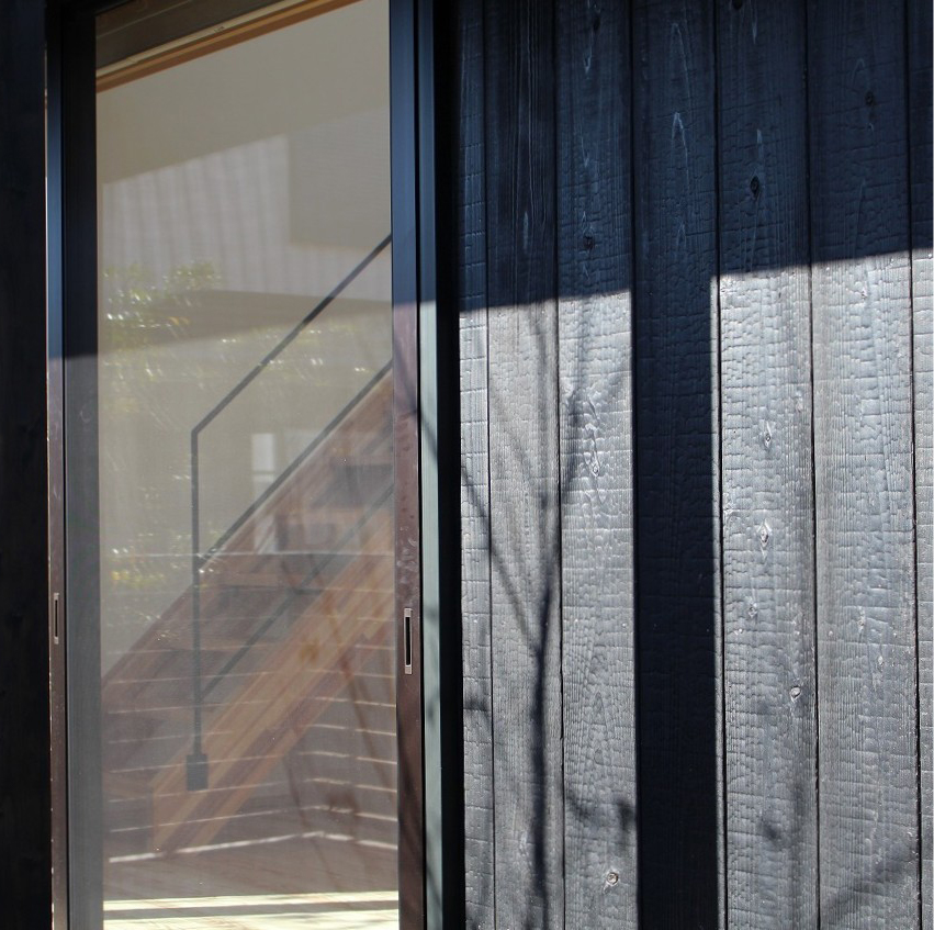 炭化層が木を守り、深い黒の質感が建物に力強さを与えます。
