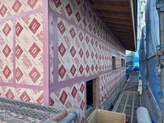 ただいま、内部は基礎断熱、外部は外断熱の施工が進んでいます。