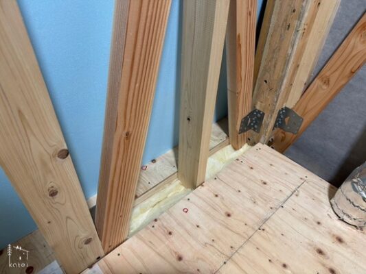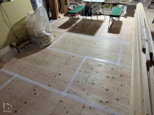 屋内は部分的な断熱改修を行い、気流止めの検討や、合板のジョイント部分へのテープ処理など、今できることを一つひとつ丁寧に進めています。