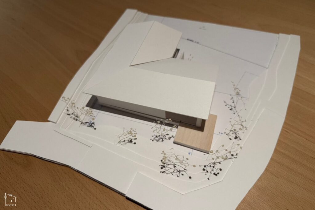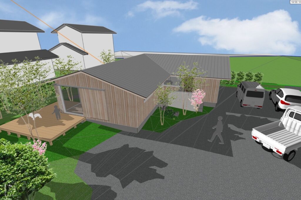 ご実家の敷地内に建てる計画で、母屋とあわせて、3世代+わんちゃん3匹が暮らす住まいになります。